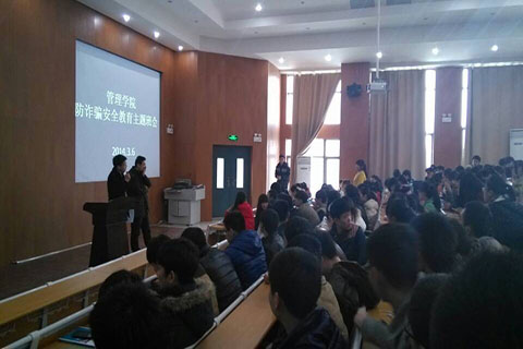 大会上,辅导员刘老师、郭老师根据往年发生的一些案例,向同学们讲述了校园中常见的电信、网络类诈骗,包括:“退学费”诈骗;网上订、退票诈骗;盗取网络聊天账号冒充好友、亲戚诈骗等。老师们提出大学生特别是新生经常使用手机和网络,对虚假信息的辨别力不强,有的骗子拨打学生电话,伪装成教育部门工作人员,称按照国家政策可退还部分学费或发放助学金,让学生按其指示在ATM机操作,伺机将银行卡内资金划走;还有的骗子在网上发布可订、退飞机、火车票信息,但必须将银行卡与其账户绑定,引诱学生通过网银或ATM机转账,伺机诈骗。