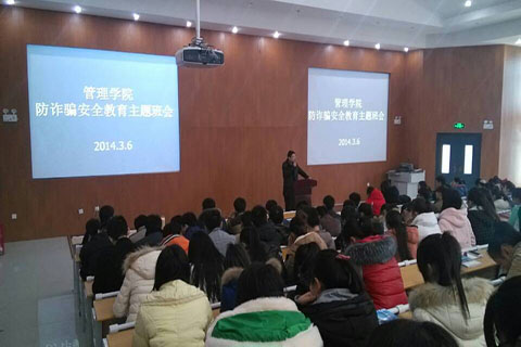 3月6日中午,管理学院全体学生在第一教学楼D2大教室成功召开了管理学院防诈骗安全教育主题大会,辅导员刘石岭、郭勇老师主持本次会议。