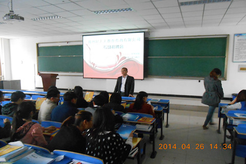 4月26日下午2点30分,由新乡医学院三全学院管理学院主办的专场招聘会在问学楼401教室隆重举行。郑州好大夫教育咨询有限公司负责人刘光辉先生,我院就业工作对口指导老师郭勇及三十余名同学参加了此次专场招聘会。