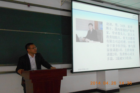 4月26日下午2点30分,由新乡医学院三全学院管理学院主办的专场招聘会在问学楼401教室隆重举行。郑州好大夫教育咨询有限公司负责人刘光辉先生,我院就业工作对口指导老师郭勇及三十余名同学参加了此次专场招聘会。
