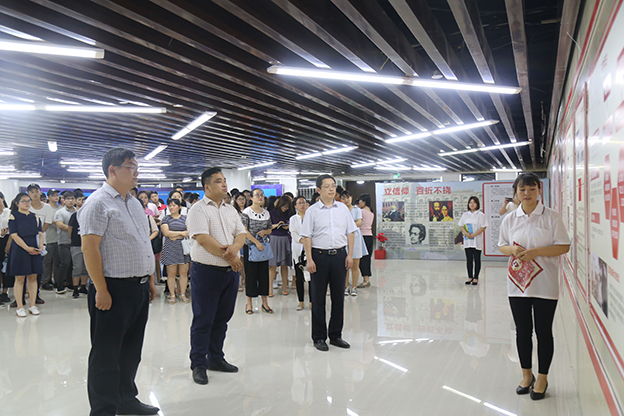 6月6日上午,图片展览在我校图书馆一楼展厅举办。我校党委副书记王金文、党委副书记张钢、学务长邱永建出席,相关职能部门负责人及百余名同学参加。图片展览由四个篇章组成,现场精巧而恢弘大气的展览让师生们眼前一亮。展馆解说员带领师生学习,从第一篇章“立信仰,百折不挠”,再到第四篇章“话梦想,聚力宪行”,解说员由马克思主义的建立过程与基本内涵入手,介绍了宪法在这些年间的进步,展现出宪法在新时代全面推进国家治理的重要地位。师生们边参观边认真记录。