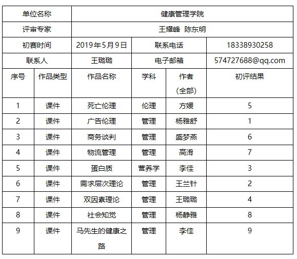 为深化信息技术与教育教学的融合,推动信息化教学进程,提升我院教师现代教育技术的应用水平,展示教师现代教育技术技能。2019年5月9日我院在第一会议室举办教学信息化大赛初赛。现将比赛结果予以公示。经初审,推荐《广告调查》(PPT)、《需求层次理论》(微课)、《蛋白质》(PPT)、《双因素理论》(微课)参加学校第十届教育教学信息化大赛。