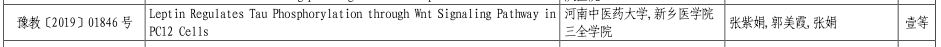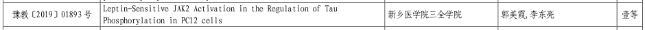 近日,河南省教育厅印发《关于公布 2019 年度科技成果奖奖励名单的通知》(教科技〔2019378 号),公布了2019年度河南省教育厅科技成果奖获奖名单。我校基础医学院教师郭美霞发表的论文《Leptin-Sensitive JAK2 Activation in the Regulation of Tau Phosphorylation in PC12 cells》荣获一等奖,生命科学技术学院教师胡焕焕发表的论文《Cloning and transformation analysis of isoflavone synthase gene into Minshan Trifolium pratense》荣获二等奖。此外,郭美霞以第二作者发表的论文《Leptin Regulates Tau Phosphorylation through Wnt Signaling Pathway in PC12 Cells》荣获一等奖。
