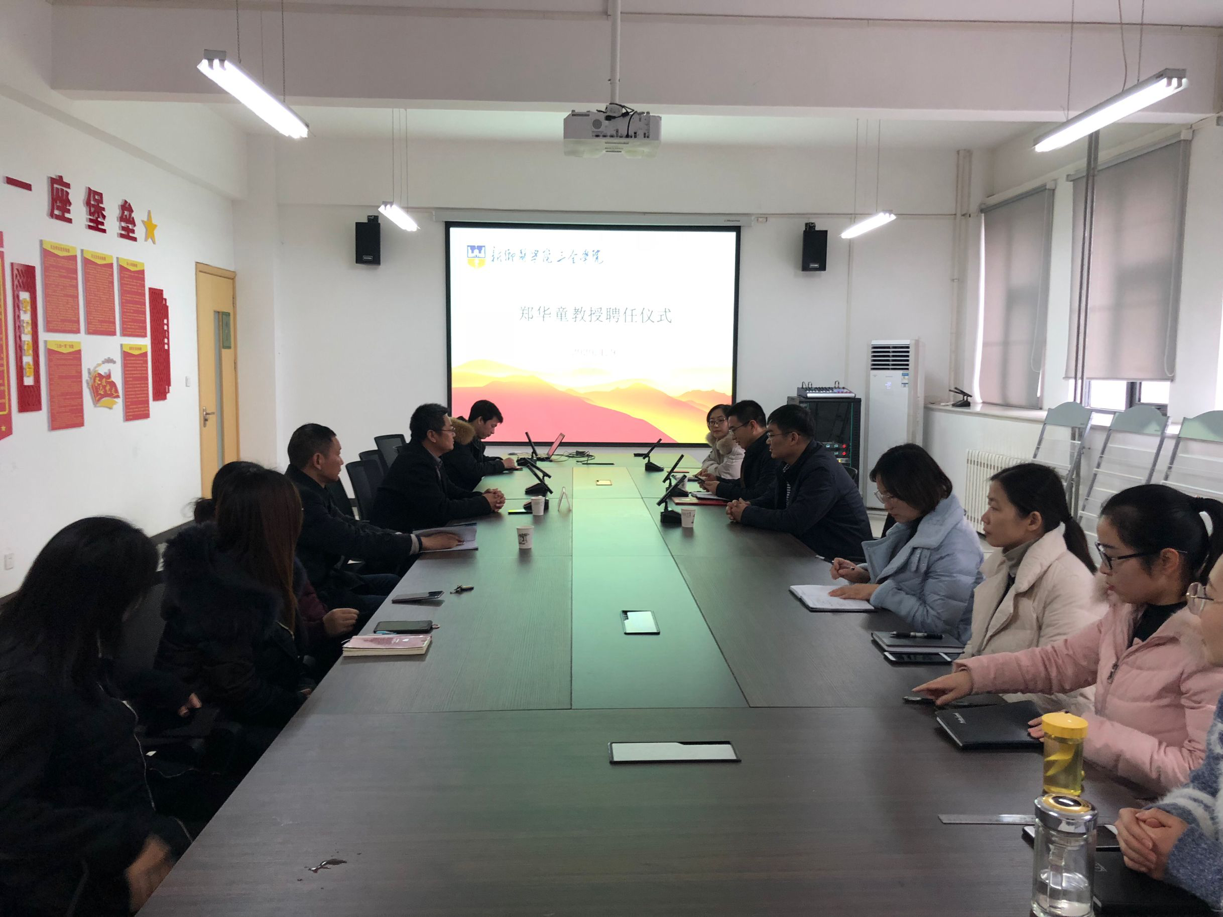1月9日,健康管理学院“河南豫盟陕西陕盟总经理郑华童教授聘任仪式”在二楼办公室举行。三全学院副院长邱永建、健康管理学院党总支书记贾臻、常务副院长王耀峰、行政副院长陈东明以及健康管理学院全体教师参加了此次活动。本次聘任仪式由王耀峰主持。