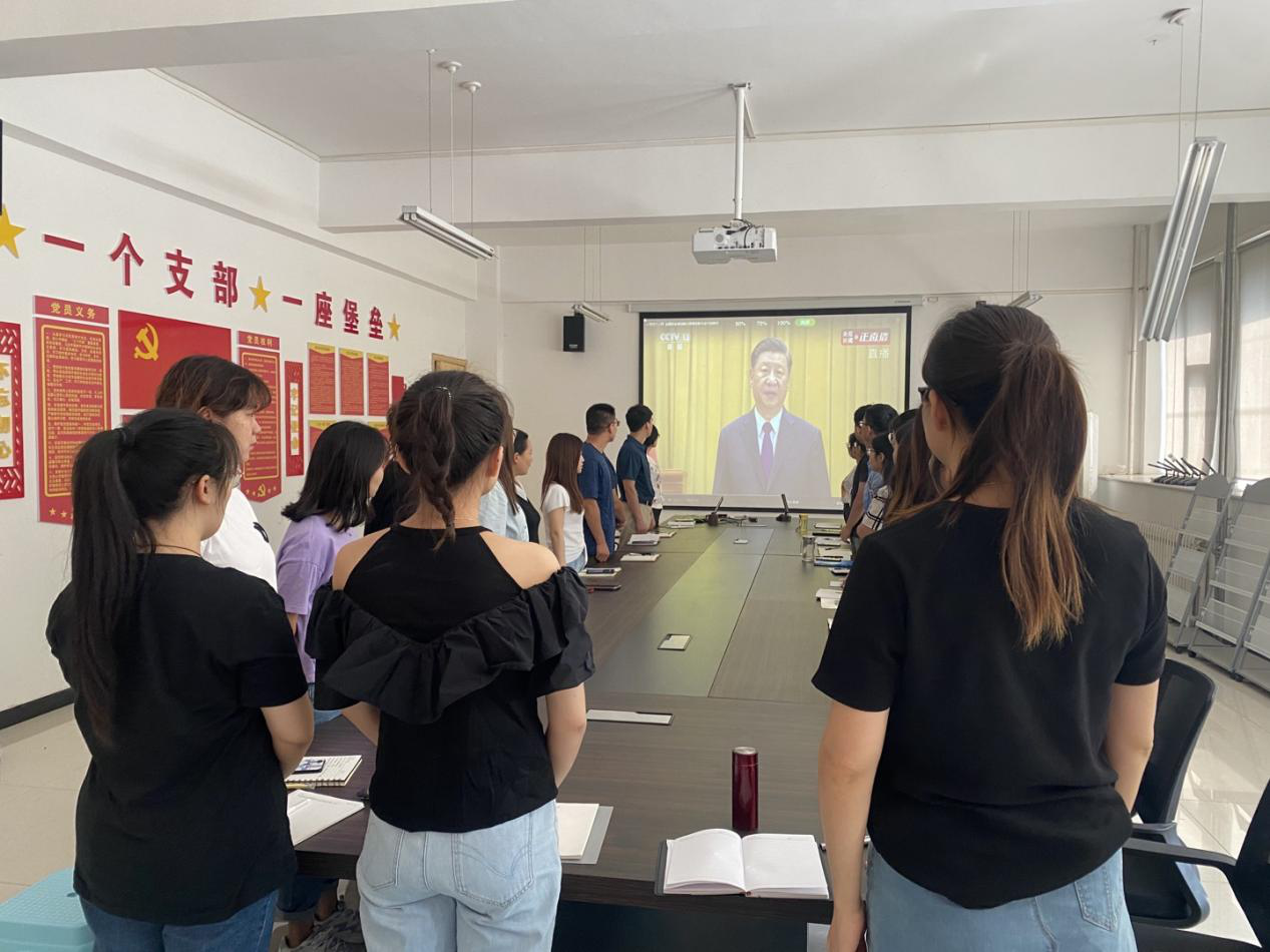 2020年9月8日,健康学院全体教职工在二楼会议室集体观看了全国抗击新冠肺炎疫情表彰大会。