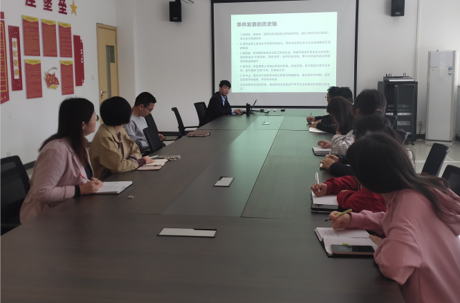 4月19日上午,健康管理学院职工第一党支部开展“中国共产党的创立”主题党日活动,活动形式为支部群线上学习+党员活动室线下学习交流,会议由支部书记陈东明主持,全体党员参加。