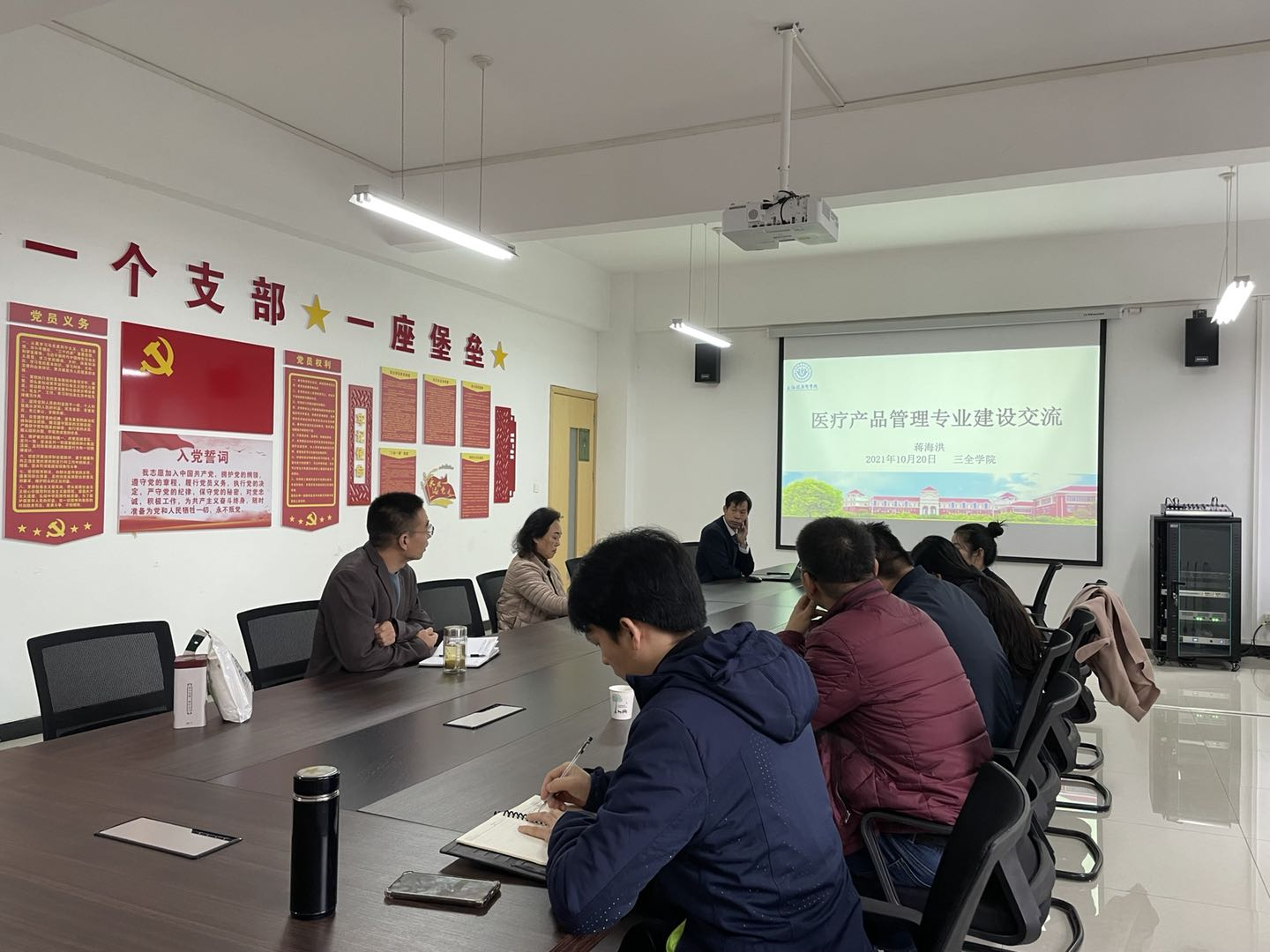 随后,在与健康管理学院教师交流过程中,蒋博士就医疗器械产业全程育人模式、专业核心课程设置以及医疗产品专业行业特色及其鲜明与各个专业任课教师进行问题交流对专业方向有了更加深入的认识。