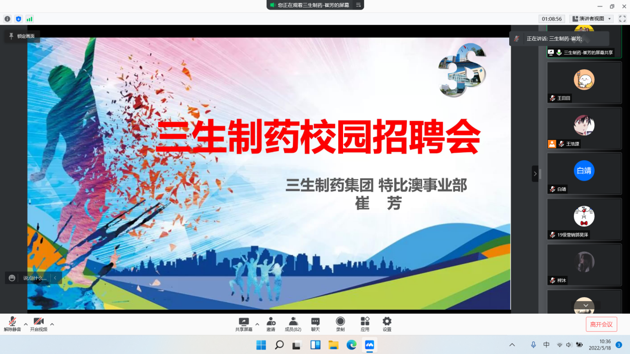 为拓宽我院学生实习就业渠道,为健康行业培养输送优秀人才,更精准地促进学生高质量实习就业。5月18日,由健康管理学院主办的市场营销专业实习双选宣讲会在腾讯会议线上平台举行。健康管理学院相关教师、市场营销专业大三学生参会,默沙东等6家医药公司受邀参加。