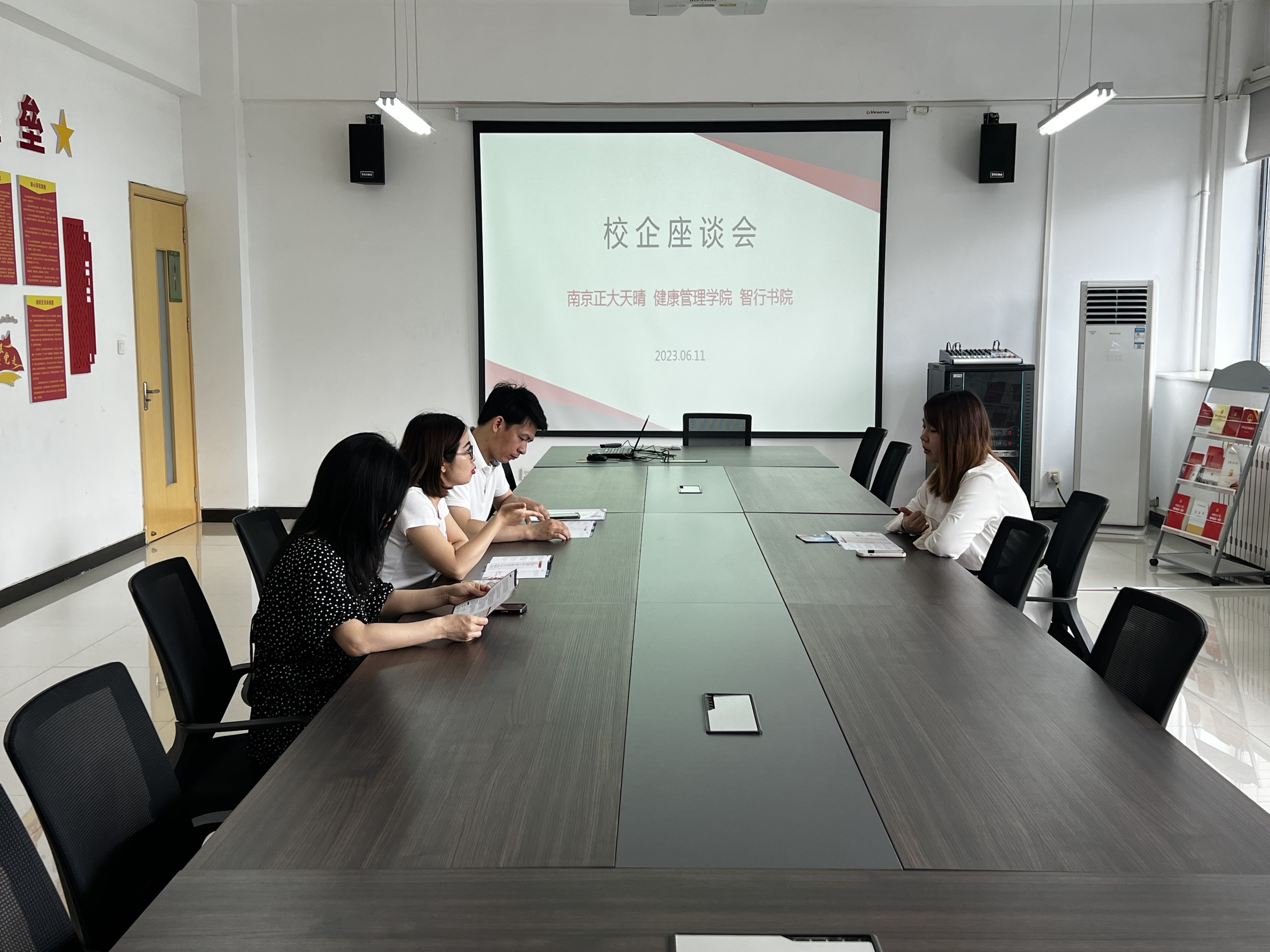 会议当天,健康管理学院会同德馨书院、崇德书院、智行书院在行政楼二楼党员活动室分别与一龄医院管理集团、南京正大天晴举行座谈会。双方围绕单位基本概况、本次岗位需求、学生实习就业、未来合作事宜等方面进行了深入交流。