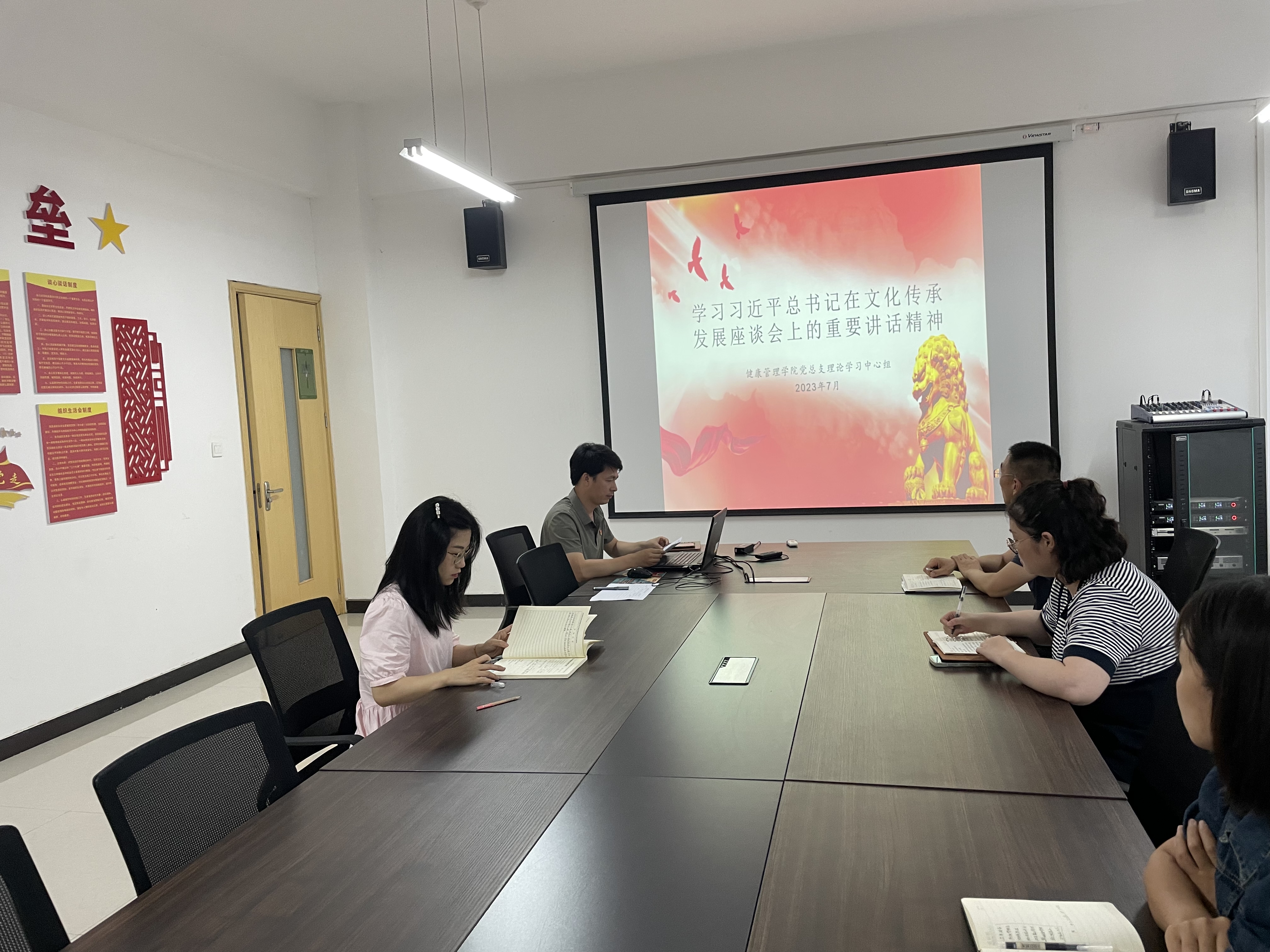 为深入领会和践行习近平总书记在文化传承发展座谈会上的讲话精神,7月3日下午,健康管理学院党总支理论学习中心组在行政楼二楼党员活动室开展《习近平总书记在文化传承发展座谈会上的重要讲话精神》专题学习,会议由党总支副书记陈东明主持。