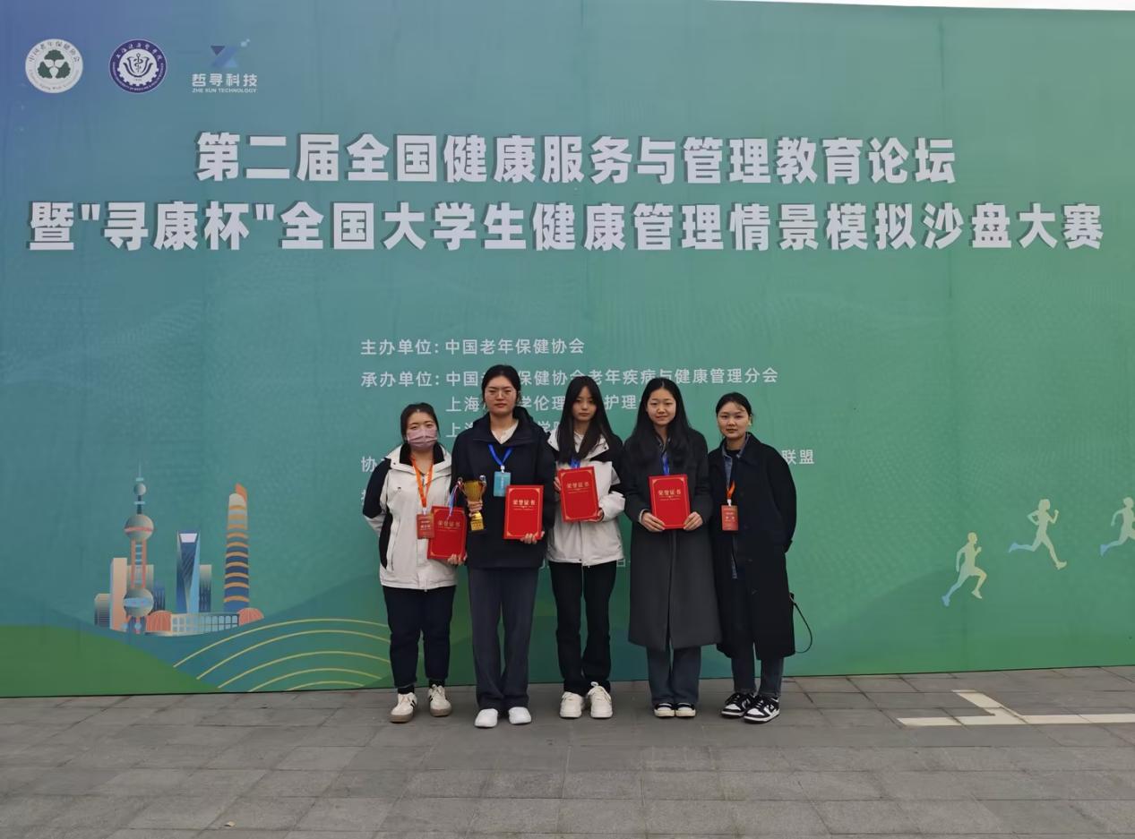 12月9日-10日,第二届全国健康服务与管理教育论坛暨“寻康杯”全国大学生健康管理情景模拟沙盘大赛在上海市上海健康医学院举行。我院由李佳、武天民老师指导的健康服务与管理专业2022级学生张一梦、吴郑耀、袁茹男3名学生的参赛,与来自全国众多高校的选手同台竞技,最终获得大赛二等奖。