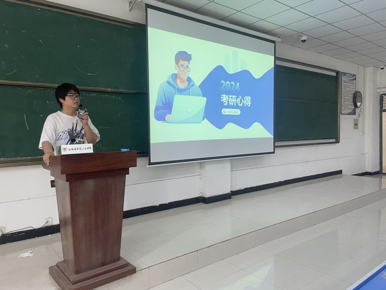 会上,2024届考研成功的两位学生代表和三位优秀实习生代表结合自身实践经历,分享自己在实习、备考和就业中的所见所闻所感,将宝贵的经验与见解传递给各位同学。陈静超和赵旭同学详细讲述了自己考研过程中的学习方法、时间规划以及如何应对压力等内容,让同学们对考研有了更清晰具体的认识。康龙生则结合自身考公经历,深入剖析了考公的各项流程和要点,包括职位选择、复习重点等,给有考公意向的同学指明了方向。齐航同学分享了实习过程中的收获与感悟,强调了实习对于提升专业能力和综合素质的重要性。真诚实用的分享,赢得了大家阵阵掌声。