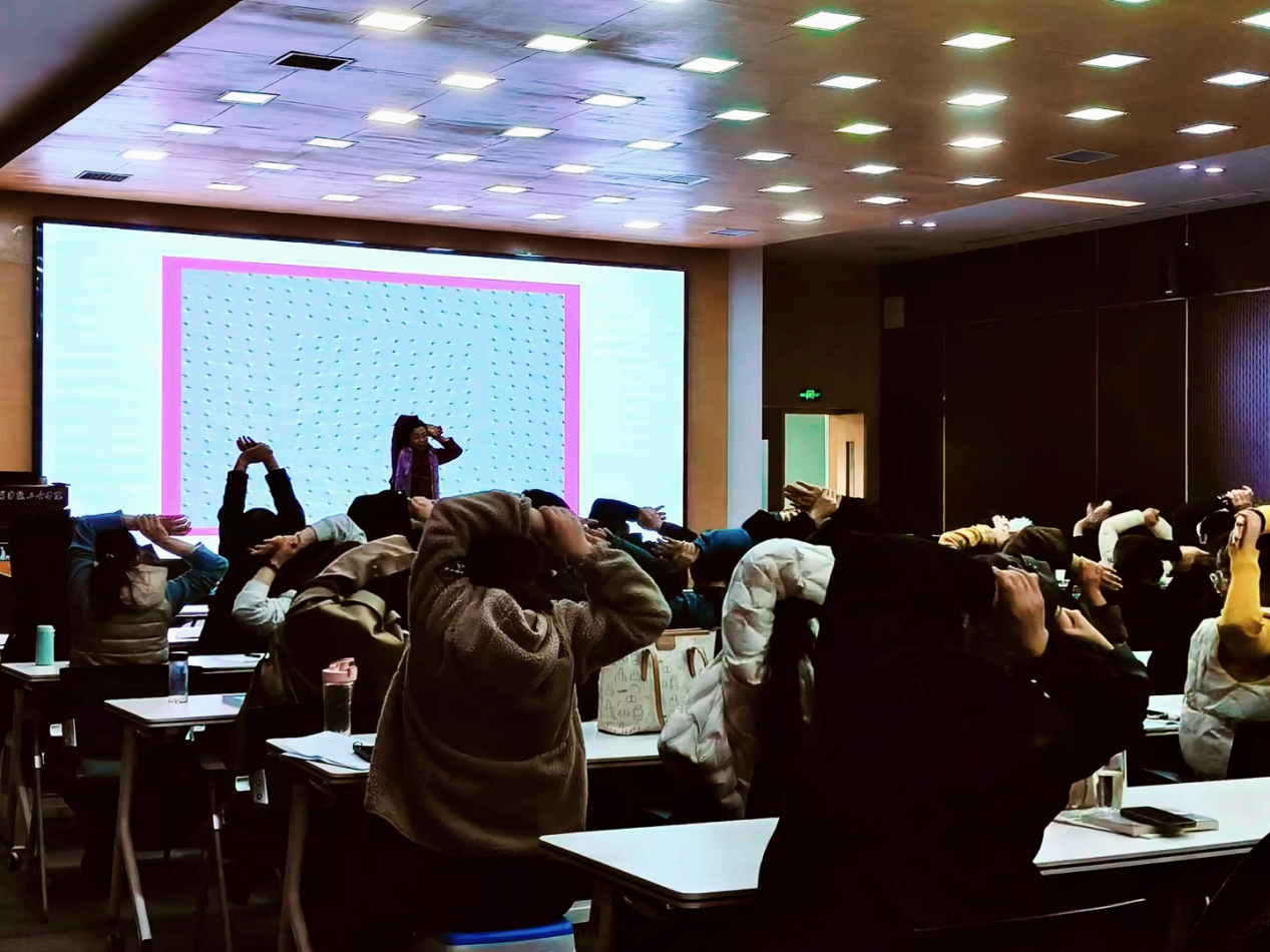 随后,景汇泉教授以"生物-心理-社会医学模式"为框架,结合自身科研与教学案例展开分享。通过"高血压患者饮食干预"、"睡眠障碍个性化管理"等生动案例,剖析疾病防控中多维度健康管理的重要性。她特别提到:"父亲的血压管理经历让我深刻认识到,医生不仅要治病,更要教会患者成为自身健康的第一责任人。"这一观点引发在场教师对"医防融合"教育模式的深入思考。为强化实践教学经验,景教授现场演示"医学人文关怀培养四步法":案例沉浸-角色代入-情感共鸣-行动转化,并分享首都医科大学宣武医院“临床医生带教公益训练营”的育人成果。"双非院校学生通过沉浸式临床见习,不仅考入首都医科大学研究生,更树立起‘以患者为中心’的职业信念。"这一鲜活案例让在场教师深受触动。景教授创新融入多项互动实践,带领全体教师体验"肩颈健康操",将健康生活方式融入教学日常;同时邀请我校学子分享北京见习感悟:"在急诊科见证生命的守护,让我读懂白大褂的重量。医生不仅要精进技术,更要成为患者的健康领航者。"真挚的成长故事令多位教师颇感触动。