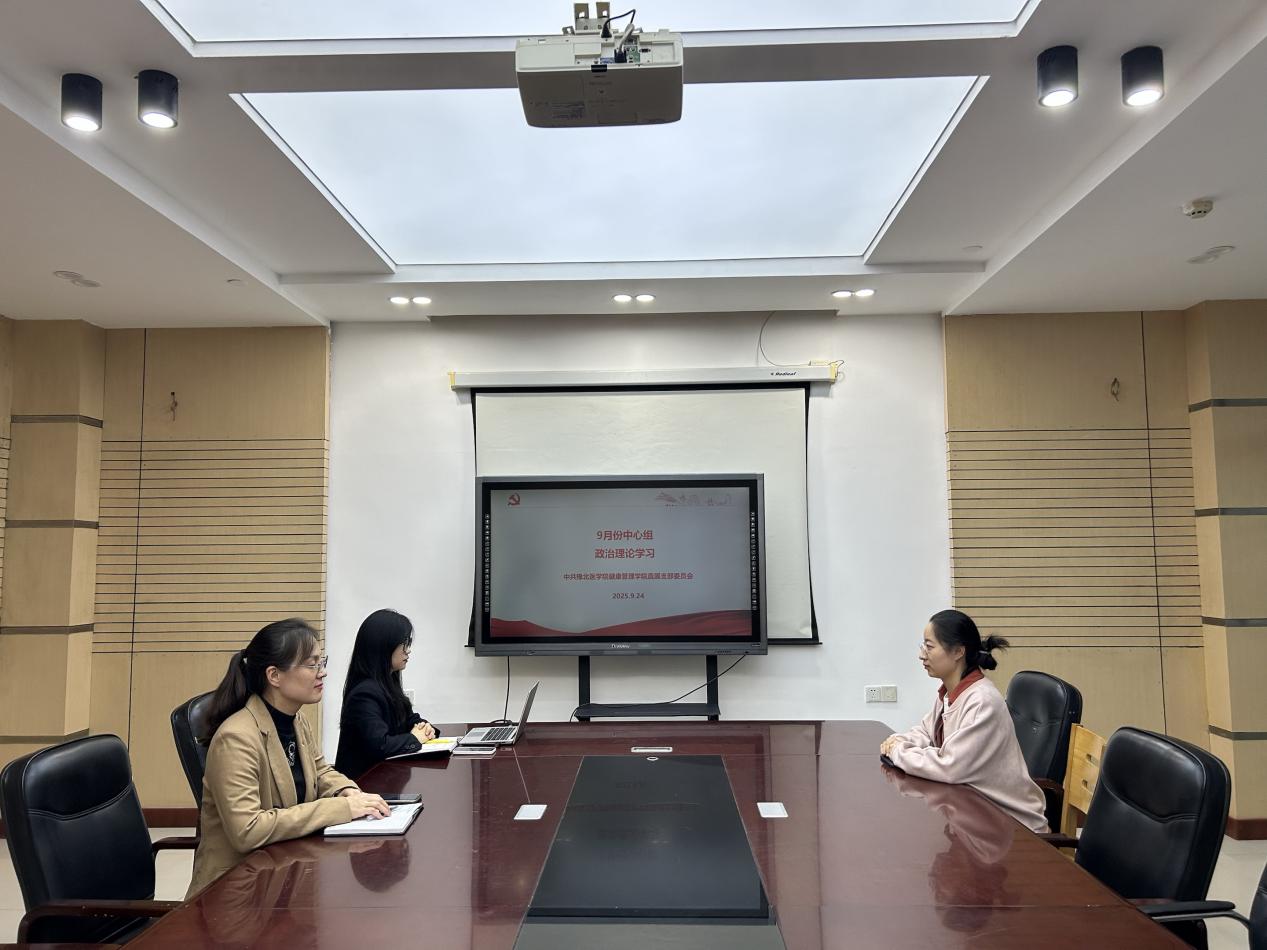 9月24日,健康管理学院直属党支部理论学习中心组在新乡校区综合楼305会议室和平原校区行政楼第一会议室同步开展9月份政治理论学习,中心组全体成员参会。会议由支部书记陈东明主持。