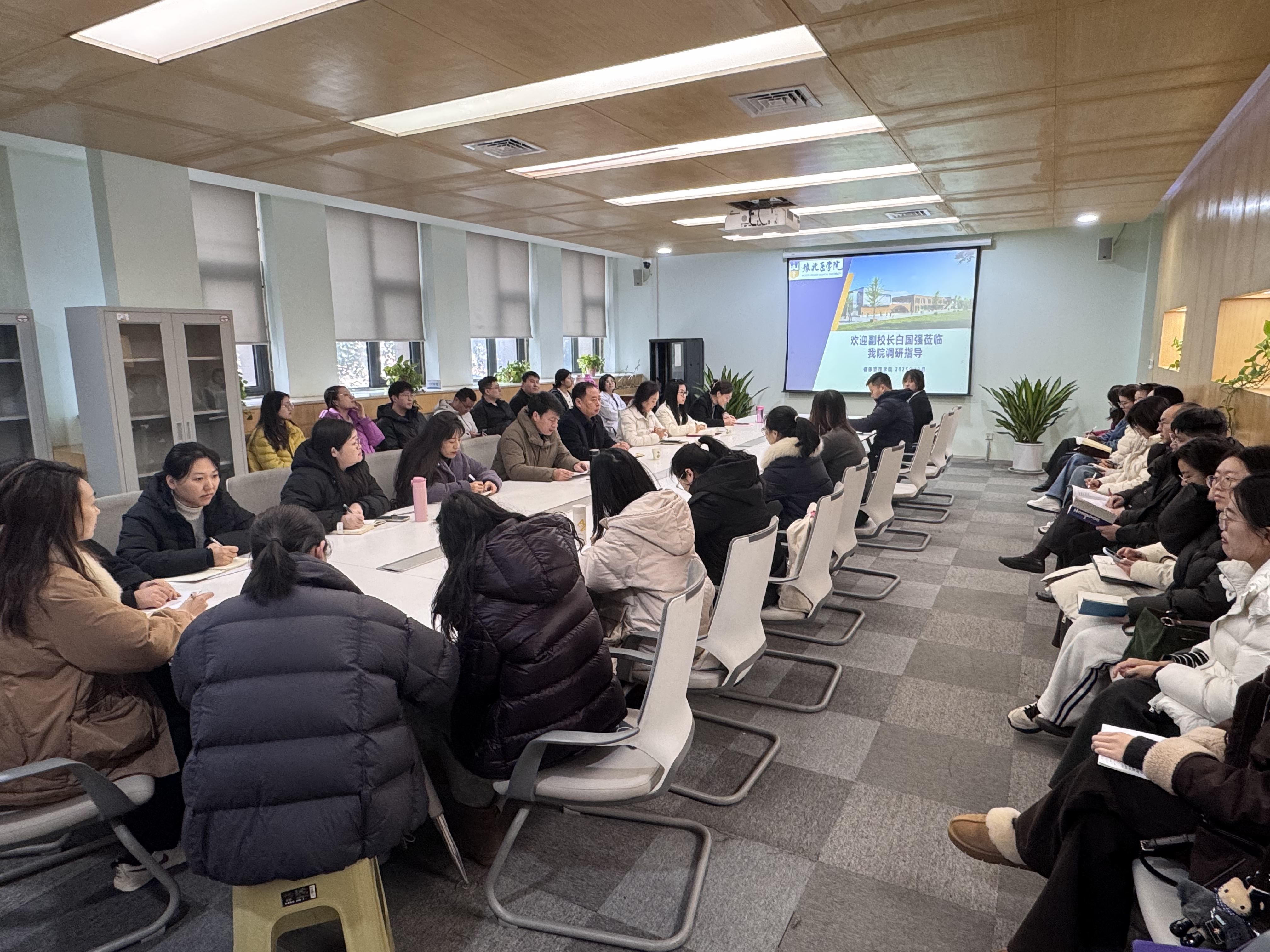 为贯彻学校《关于开展2025年下半年校领导联系基层工作的通知》的相关要求,推动学校高质量发展走深走实,12月30日上午,副校长白国强到健康管理学院调研指导工作,并参加健康管理学院直属党支部“打好收官战 谋划‘十五五’”主题党日活动。活动由党支部书记陈东明主持,领导班子成员及全体教师参会。