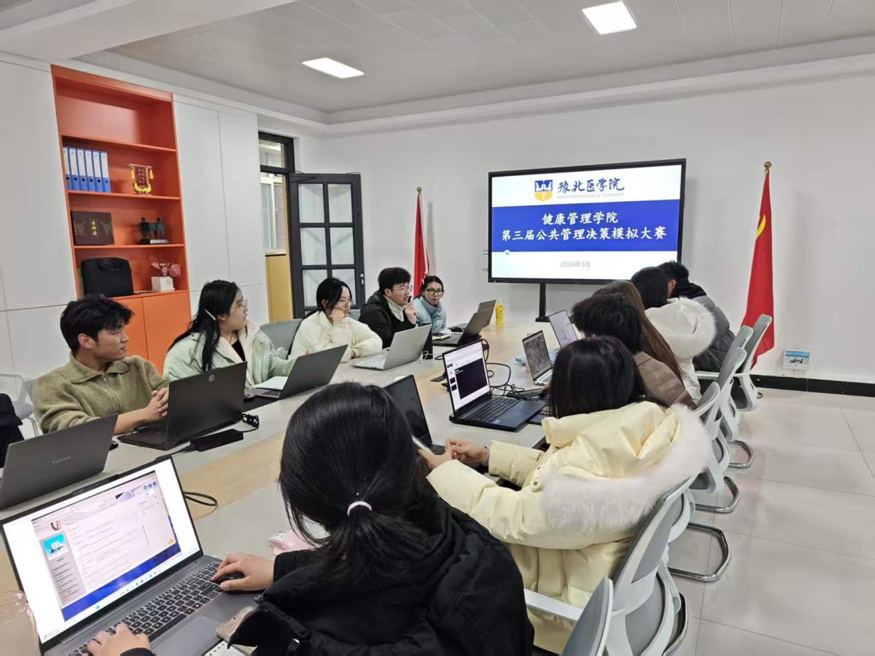 为进一步提升我院公共管理类专业学生创新决策能力,通过“以赛代练、以赛促学”的模式营造良好的学习氛围,增强我院学生对公共管理专业知识的应用能力,健康管理学院于2026年3月16日在综合楼二楼党建会议室举办第三届公共管理决策模拟大赛。