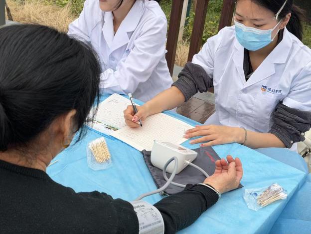 活动现场划分了秩序引导区、健康检测区和科普宣讲区,志愿者们分工协作、有条不紊。活动伊始,志愿者们向现场居民细致讲解检测须知,强调本次血压、血糖测量全程免费且操作规范,引导大家有序排队,并贴心提醒测量前安静休息5分钟,确保检测数据精准有效。 在健康检测环节,志愿者们凭借扎实的专业知识,为居民逐一测量血压、血糖,认真记录每一项数据,并根据检测结果进行简单健康评估。针对指标异常的居民,志愿者们耐心告知注意事项,给出初步的饮食、作息建议,同时细致解答居民关于日常健康养护的各类疑问,用专业与耐心赢得了居民的一致认可。 科普宣讲互动环节中,志愿者们围绕中老年人高发的高血压、糖尿病,用通俗易懂的语言普及基础防控知识,逐一纠正居民生活中的错误养生观念,从科学饮食、规律运动、合理用药等方面展开详细讲解,引导居民树立“早预防、早发现、早治疗”的健康意识,提醒高危人群定期监测身体指标,及时就医。