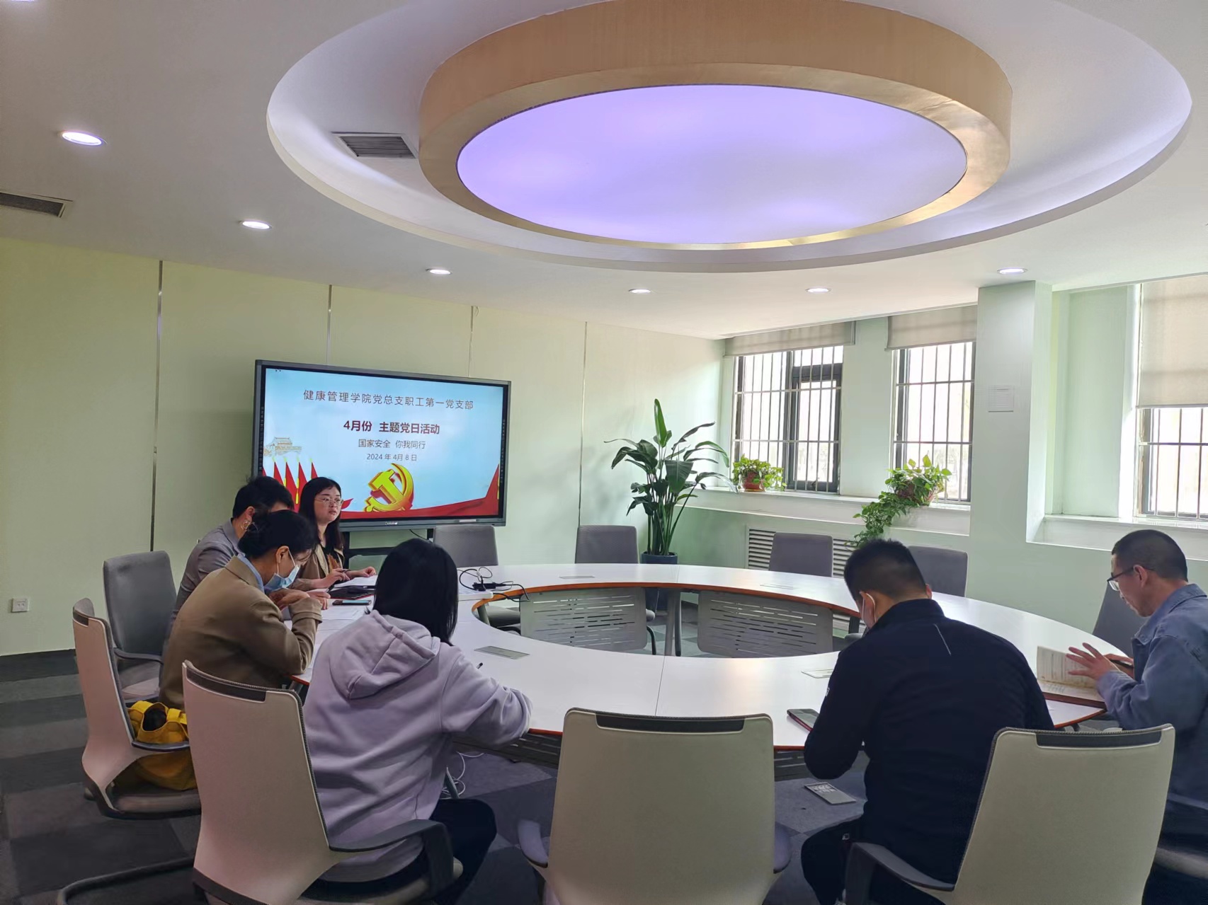 4月8日上午,健康管理学院职工第一党支部在行政楼第二会议室开展4月份主题党日活动,主题围绕“国家安全 你我同行”展开。会议由党支部书记陈东明主持,全体在校党员参加。活动第一项,全体党员集中学习《...
