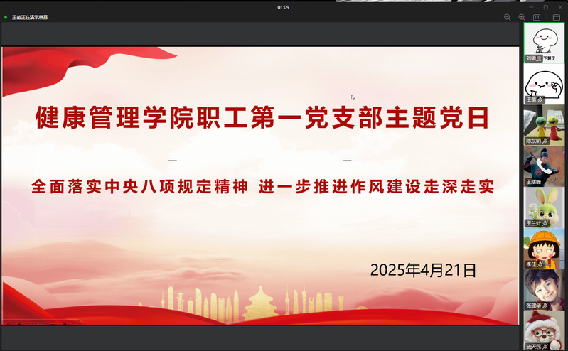 4月21日上午,健康管理学院职工第一党支部通过企业微信群开展4月份主...