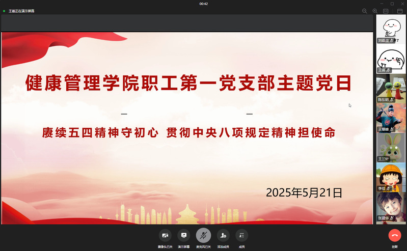 5月21日上午,健康管理学院职工第一党支部通过企业微信群开展5月份主...