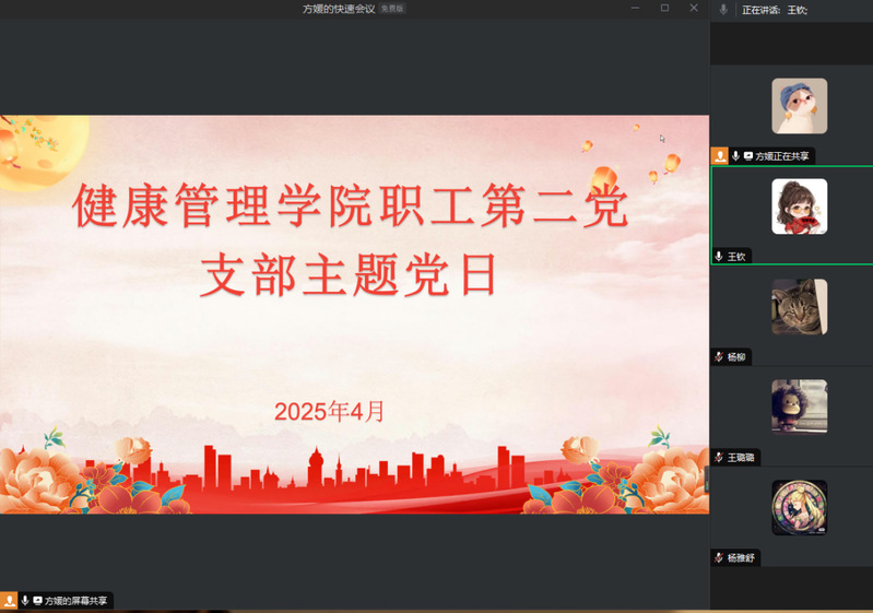 4月21日上午,健康管理学院职工第二党支部通过企业微信群开展4月份主...