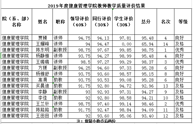 健康管理学院2020-2021学年优秀教师评选结果的公示
