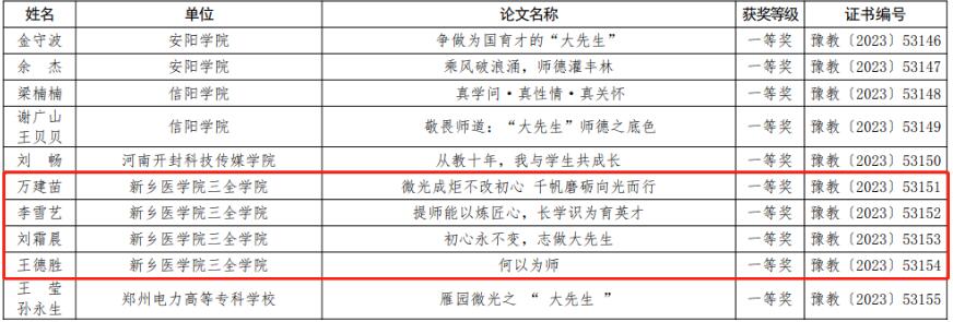 我院教师在河南省教育厅“奋进新征程,志做大先生”师德主题教育征文中荣获一等奖